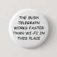Texto que humorísticamente dice "El telégrafo arbusto funciona más rápido que el Wi-Fi en este lugar". "Bush telegraph" es la jerga australiana para la red de chismes, insinuando que la comunicación boca a boca es más efectiva que internet.