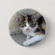 lindo bebé gato descansando en el suelo al lado de una pared cálida, calentada por el sol de verano