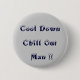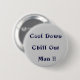 Un botón personalizado que dice > ¡Cálmate Tranquilízate hombre!! en un fondo blanco con una fuente helada como la nieve. Un botón de consejo de actitud, adecuado para alguien con problemas de ira o angustia