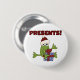 Camisetas navideñas de Santa Frog, sudaderas, bolsas de té, tarjetas, pegatinas, tazas, imanes, cadenas de claves, y otras prendas de vestir y regalos que presentan una rana con un sombrero de Santa, regalos y texto que dice "¡Presentes!".
