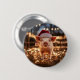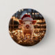 Pin botón con un adorable cerdo vestido con un sombrero de Santa y rodeado de Navidades con luces intermitentes.