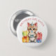 Adorable botón de chica de cumpleaños personalizado con un lindo ilustracion de acuarela ai de un gatito con un gorra de cumpleaños y regalos.
