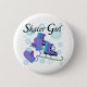 Nuestro Chica de Skater diseña camisetas, tazas, bolsos, tarjetas, almohadas, relojes de pared, keepsakes, hoodies y otros temas de patinaje con un par de patines azules y lavanda y mitones en una cuerda rodeada de muchos copos de nieve y texto que lee Chica de patinaje!
