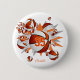 Este divertido botón de baloncesto presenta una "explosión" de naranja de tamaño variado y baloncesto blanco y formas de estrella naranja y gris - un patrón de pequeños puntos de polka blanco cubre la estrella naranja - personalizar con el nombre y número jersey del atleta - por katz_d_zynes