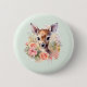 Botón con un hermoso ilustracion con un bonito ciervo. Rodeado de rosas y flores.