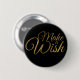 Cumpleaños Make a Wish Black & Gold Button tiene letras de oro en un fondo negro.
