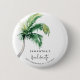 Regalo de despedida de soltera trendy y moderno con tema tropical, botón de promoción con diseño de árbol de palma en acuarela sobre fondo blanco.