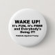 Botón blanco y negro con el lema... ¡DESPIERTA! Es divertido que sea libre y todos hagan patriotas en TI contra Trump