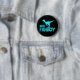 Diseño de Dino Fanboy - Silueta de Velociraptor. Versión azul. Botón para los amantes de los dinosaurios.
