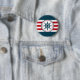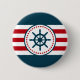Diseño náutico con decoración de ruedas de vela en forma redondeada con estrellas sobre fondo rayado rojo, azul y blanco