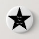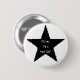 Una estrella negra de borde lisa y simple sobre un botón. La frase del centro dice "¡Bésame, soy una estrella de rock!" por diversión y coqueteo.