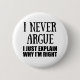 Si te gustan las citas sarcásticas graciosas o los grandes diseños humorísticos, entonces este lema original "nunca discuto, solo explico por qué tengo razón" es para ti. ¡Es un gran regalo para tu familia, amigos o para ti mismo! Este diseño es ideal para todo aquel que ame el sarcasmo y el humor. Si te gusta esta cita graciosa, echa un vistazo a otras obras similares en la tienda Omitay. Mantente a salvo y gracias por apoyar a un artista local.