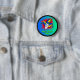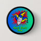 Fondo del trullo, azul y negro del círculo con el bufón coloreado multi en el centro y el inocente de las palabras escrito abajo en verde.