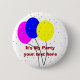 Botón Fiesta de globo colorido, ¡que todos sepan de quién es el fiesta! Coloque su propio nombre o texto personal en un botón. Invitaciones disponibles para el diseño de globos compactos