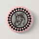 Botón redondo con una imagen esbozada de Alicia en el Conejo Blanco del País de las Maravillas en un marco negro sobre rosa. Vea toda la colección de botones y pines de Wonderland en los TOUCHES ESPECIALES | Sección de favoritos de partido.