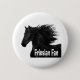 Retrato de un semental frisio negro hermoso con la melena que fluye larga, fotografiado y diseñado por Magdalena Strakova. Inscripción: Fan frisia. ¡Regalo único y original para cada amante frisio del caballo!