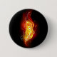 Una brillante pluma de pavo real hecha de fuego y llama sobre fondo negro.