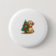 Chapa Redonda De 5 Cm Feliz perro navideño con un bonito árbol para adul
