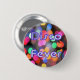 Botón redondo con una imagen de las luces disco de color arcoiris y las palabras "Disco Fiebre" con letras violetas claras y oscuras. Consulte la coincidencia de la cadena de llaves metalizado de gran calidad y la cadena de llaves acrílicas redondas de un solo lado. Vea toda la colección de botones y pines Disco 70s en los TOUCHES ESPECIALES| Sección Favoritos de la fiesta.