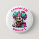 botón chica de cumpleaños que se puede personalizar con el nombre de la hija con un dulce personalizado lindo con gorra de cumpleaños, regalo y globos.