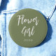 Chapa Redonda De 5 Cm Flores Niña Verde Sage Blanco Boda