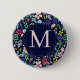 Floral con follaje flotante, flores estilizadas en bonito, hojas, bayas, bellotas y puntos de acento polka en tonos verdes, azules, rosas, moradas y amarillas con acentos en naranja, rojo y marrón. Está situado en un fondo azul expreso oscuro a medianoche. Personalice con su fuente inicial de color rosa en una placa azul oscuro enmarcada en rosa.