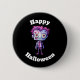Un botón con un lindo ilustracion. Un monstruo Frankenstein con el pelo rosado y púrpura y un abrigo y corbata de zapatillas.