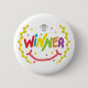 Un divertido diseño Winner muestra la palabra con letras coloridas con un trofeo por encima, hojas de laurel a ambos lados, una gran sonrisa y estrellas. ¡Por los ganadores que ganan en grande!