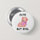 Botón con un gato que puede ser visto como adorable y un poco "malvado". Aunque el ilustracion es principalmente dulce y caprichoso, fácilmente podría ser enmarcado como "engañosamente inocente" — el tipo de arte que juega con la idea de que los gatos son partes iguales adorables y diabólicos.