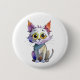 Este botón muestra un caprichoso ilustracion acuático de un gato pequeño de ojos anchos y escrupulosos. Partes iguales de encantadoras, peculiares y maliciosas, el diseño captura la impredecible personalidad que hace que los gatos sean tan irresistibles -entrañables en un momento y deliciosamente rudos en el siguiente.