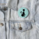 Elegante gato negro posando con una pata levantada. Tiene una cola linda y rizada y lleva puesto un elegante estrangulador.