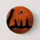 Un botón súper divertido con tema de Halloween. Brujas gatitas sentadas en un árbol mirando como un gatito de brujas pasa volando. Un diseño divertido y caprichoso de Halloween.