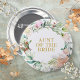 Con una delicada guirnalda de rosas campestres y vegetación en acuarela, este botón elegante es una forma sofisticada de identificar a las personas clave en tu ducha de novia y evento de boda. Incluyendo, novia, novio, ujier, madre o padre de la novia o novio, dama de honor, padrino o cualquier otra persona que sea clave en tu día especial. Diseñado por Thisisnotme©
