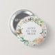 Con una delicada guirnalda floral de rosas campestres en acuarela, este botón elegante es una forma elegante de identificar a las personas clave en su shower de novia y evento de boda. Incluyendo, novia, novio, ujier, madre o padre de la novia o novio, dama de honor, mejor hombre o cualquier otra persona que sea clave para su día especial. Diseñado por Thisisnotme©
