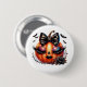 This button pin is shown with a cute festive Halloween glam pumpkin art print.