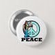 Hippie sosteniendo una guitarra con un signo de paz en el fondo.