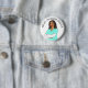 Preséntese a sus pacientes o clientes con este botón de fácil lectura. Dibujo personalizado de una mujer de color, enfermera, médica, fisioterapeuta o cuidadora con matorrales azules. ¡Escríbeme aquí a través de Zazzle si quieres que haga una a tu gusto!