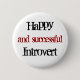 Un botón blanco con "Happy and exitous Introvert" escrito en él para una declaración positiva.