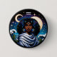 A fun horoscope sign Aquarius button with a pretty celestial illustration of a water bearer African-American woman in front of stars and a full moon/
