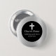 Elegante 25º aniversario de la iglesia: Celebrar con estos hermosos pines personalizados negros y plateados —una cruz metálica cristiana y fondo.