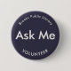 Brillantes botones azules "Ask Me" para voluntarios, profesores, guías, organizadores de eventos para eventos especiales, como bodas, ferias de artesanías, espectáculos en casa y jardín, eventos caritativos, negocios y funciones corporativas. ¡Fácil de personalizar!