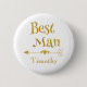 Honre al Padrino con estilo con este elegante botón de boda personalizado. Con letras doradas y un encantador motivo de corazón y flecha, este recuerdo se imprime con el nombre del Padrino, perfecto para las festividades previas a la boda y las celebraciones del día.