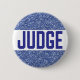 Insignia del juez para concursos y concursos. Purpurina brillante falsa con texto de tipografía. El botón moderno fácil de leer es perfecto para concursos y eventos que requieren de un juez. Ideal para eventos de verano del 4 de julio.