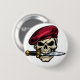 Un llamativo mascarón de proa de estilo militar que presenta una calavera humana muy detallada que lleva una boina de paracaidista de color burdeos profundo. La calavera aprieta un puñal de combate táctico entre sus dientes, con una empuñadura dorada y una hoja de acero pulido. La obra de arte utiliza una estética limpia de cómic con contornos negros gruesos y sombreado cel-shading sutil, lo que la hace ideal para ropa, avatares de juegos o insignias de unidad. El fondo gris neutro asegura que los rojos vibrantes y los acentos dorados destaquen con intensidad.
