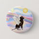 Un usuario de chocolate Labrador Retriever prueba sus alas entre las nubes esponjosas del cielo antes de entrar en el Puente Arcoiris, donde los ángeles y amigos esperan.