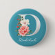 Chapa Redonda De 5 Cm Letra D floral | Monograma blanco metálico