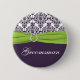 Chapa Redonda De 5 Cm Lime y Purple Damask Groomsman Pin
