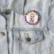 Pequeña y pequeña personalizado, pequeña niña rubia, madre para ser un botón de ducha para bebé. Fondo floral rosa y morado, mamita para el botón de la ducha de bebé.