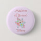 Un bonito botón de ducha de novia para la matrona de honor, este diseño presenta un fondo morado claro con el "Matrón del honor" escrito con un divertido tipo de letra rosa con un ramo de flores rosa y azul en el centro.  Debajo del ramo está tu nombre con una letra rosada.  Personaliza tu botón de matrona de honor hoy!