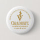 Este botón de la fiesta de graduación de la escuela de medicina veterinaria personalizado de moda muestra el nombre del graduado universitario en un elegante guión dorado para la clase de 2024. Personalizar en su universidad bajo el veterinario médico caduceus para un gran regalo de graduación o etiqueta de nombre DVM.